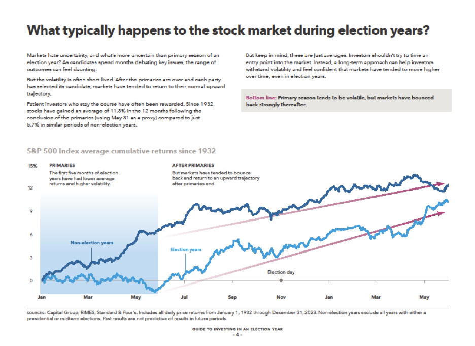 We firmly believe the best course of action is to stay focused on your long-term goals and avoid making impulsive decisions based on election-related noise.